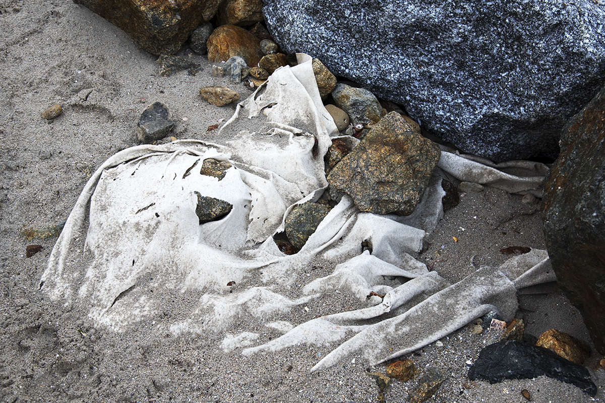 ...Alors, ces traces venues d’ailleurs se fondent dans le décor et tentent de se réincarner en du minéral, du végétal, du bois flotté, du rien du tout, ou encore, en œuvre d’Art.